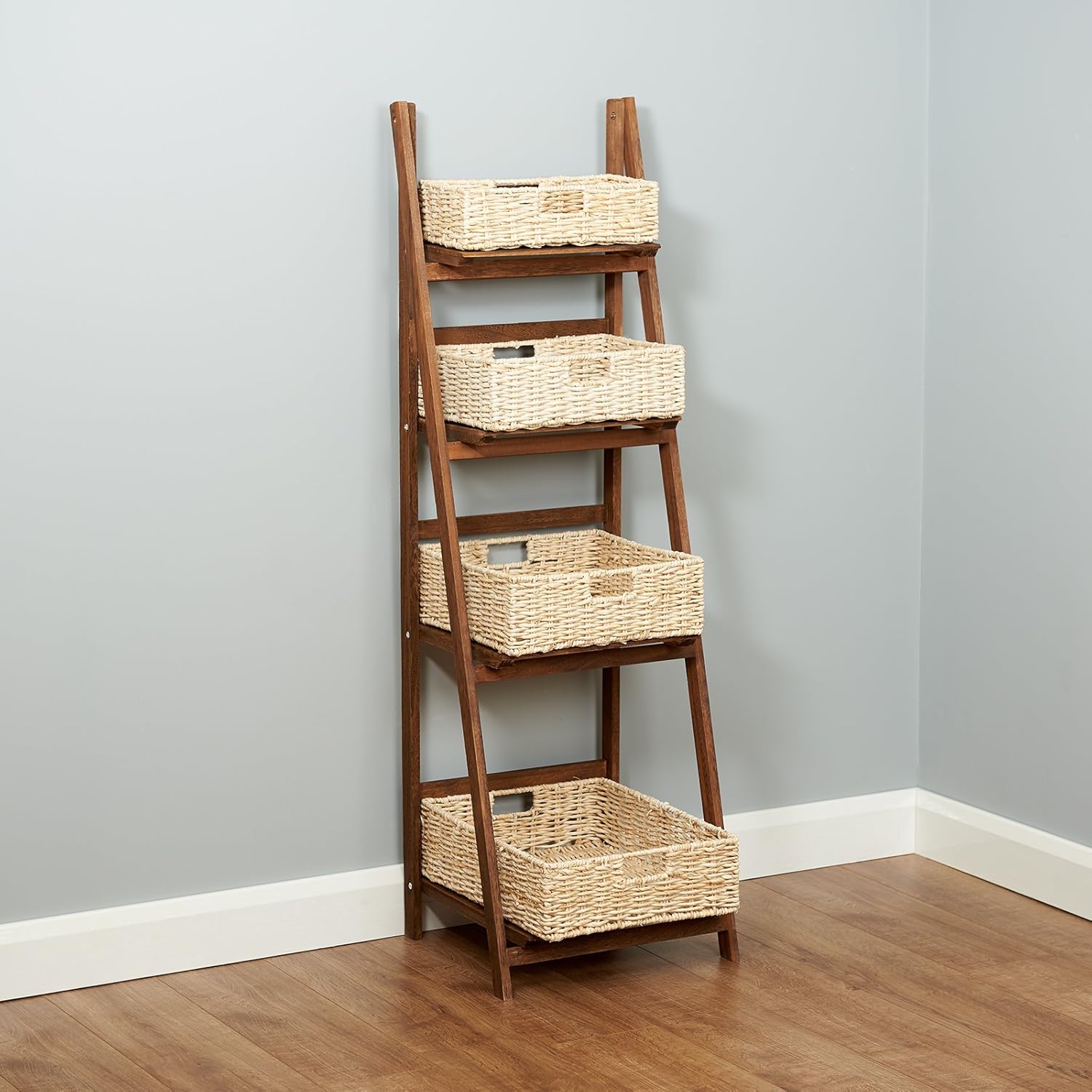 Original Resolution: 1500x1500 Hartleys 4 Tier Brown Ladder Shelf With Natural Wicker Basket Set Furniture Bookcases Wall mounted and floating shelves(20). 985x2337 - With its four shelves, this ladder shelf is designed to have flexible storage for books, curios, accessories, sculptures or decorative accents.